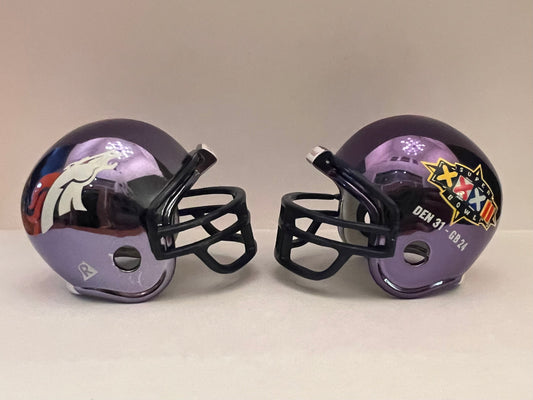 Denver Broncos Riddell NFL Pocket Pro Helmets Super Bowl XXXII and XXXIII Championship Chrome (2 Helmets)