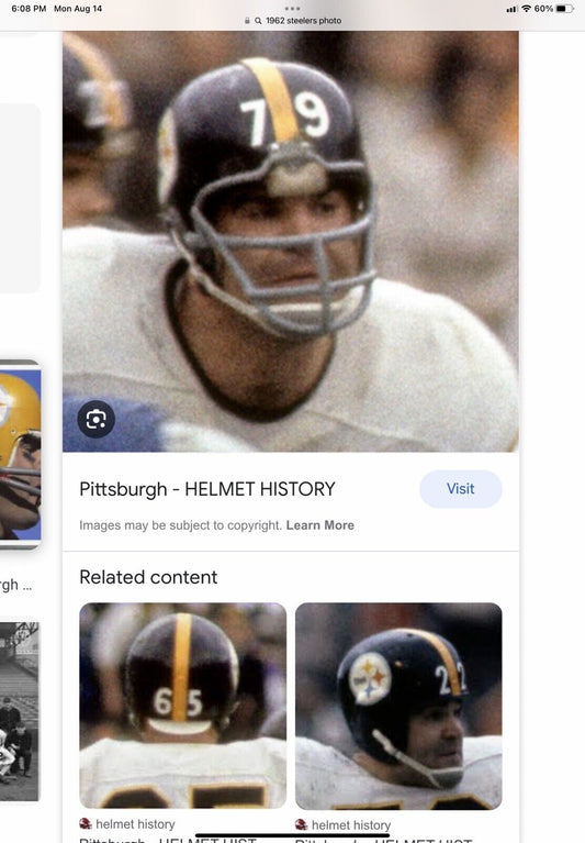 RK2 Style Suspension Football Helmet Pittsburgh Steelers 1962 Playoff Game Steel