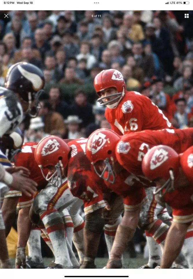 Authentic and original Kansas City Chiefs RIDDell Classic RK2 Football Helmet with thin mil decals of the 1970 Kansas City Chiefs and customized to represent the helmet worn that year by All-Time great and Hall of Famer, Len Dawson as he led the Chiefs to a dominating victory over the Minnesota Vikings in Super Bowl IV.