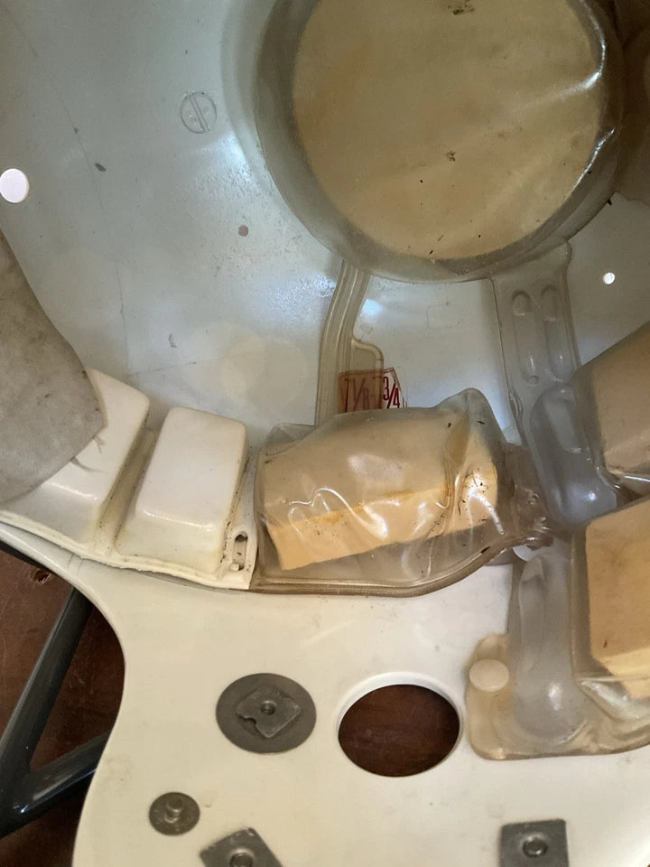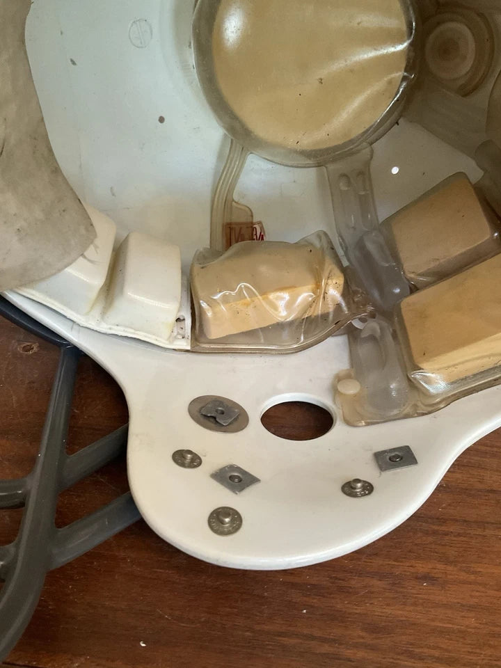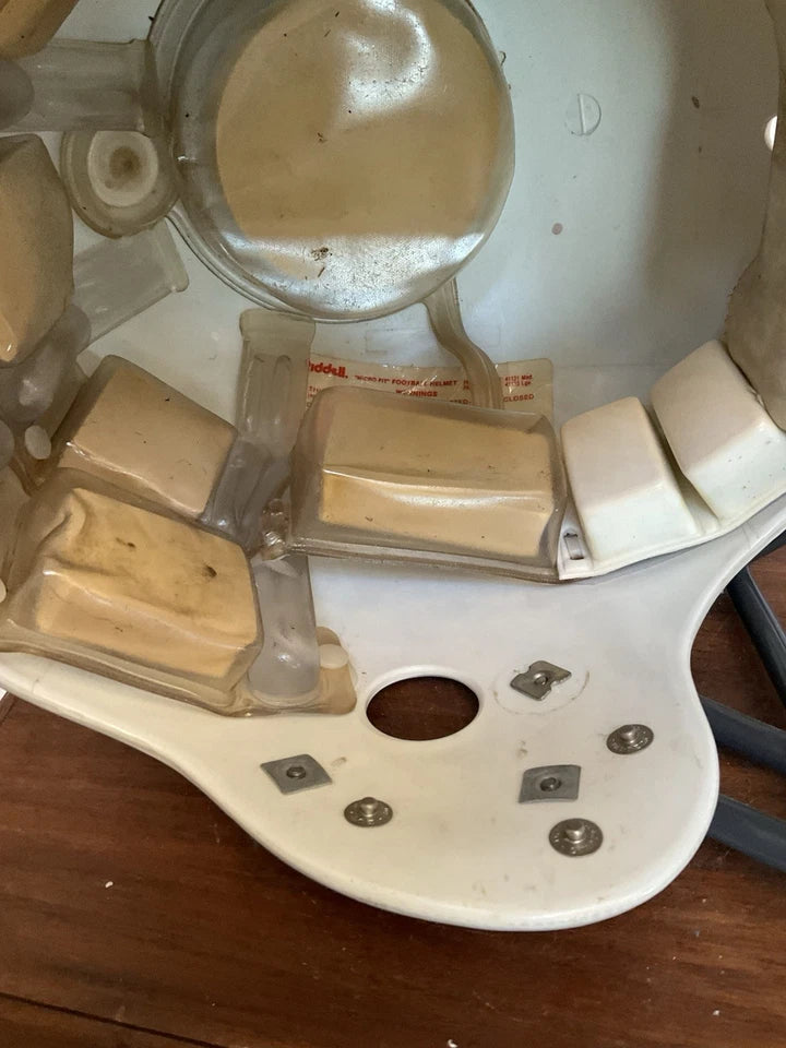 Vintage and original Cardinals Riddell Kra-Lite II Micro-Fit football helmet from 1982 as shown by the date stamp in the helmet. The Micro-Fit was Riddell’s water-padding system which came out during 1969 and was made for more than a decade. This is definitely one of the more rare helmet models you will find!
