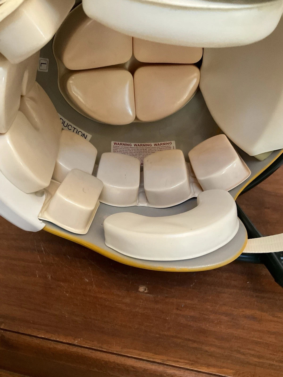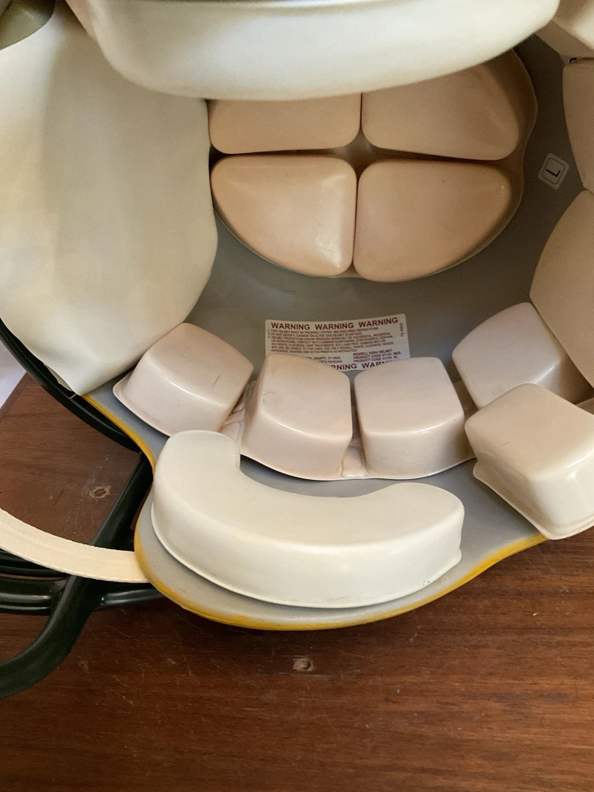 Helmet comes with vintage Dymo tape in appropriate color with Favre’s number 4 on rear of helmet.