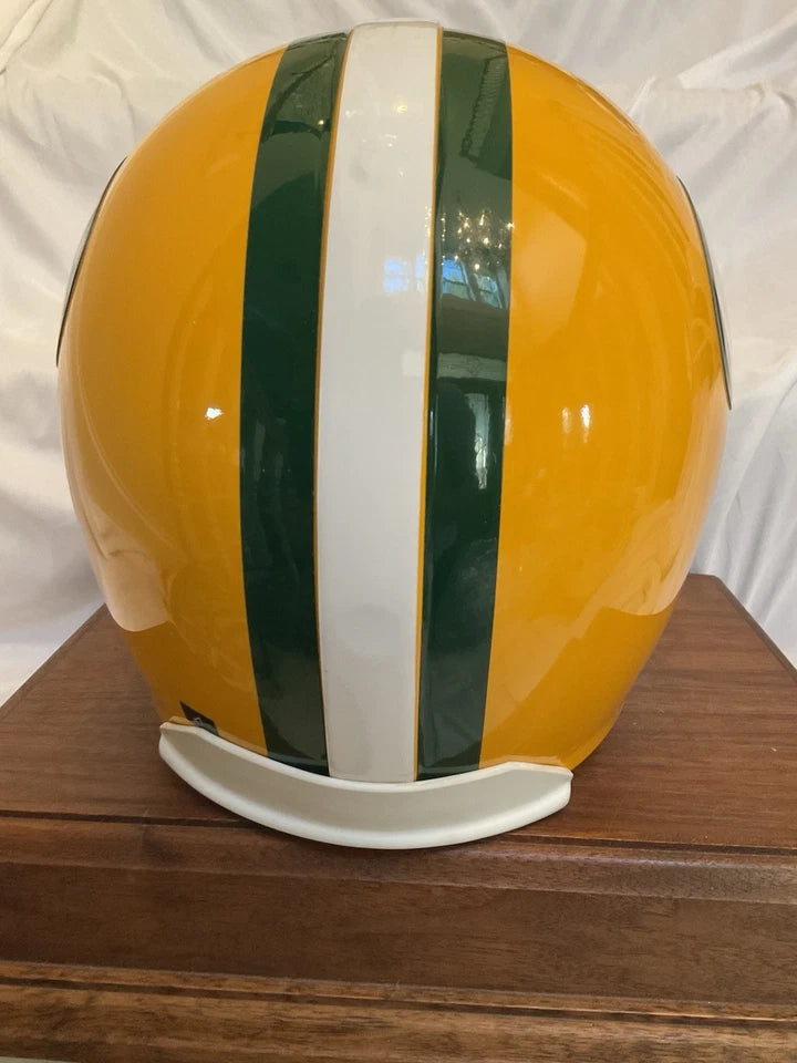 Helmet has been customized to represent the helmet worn by Packers all time favorite Brett Favre and comes with all you see, including double wire OPO facemask as worn by Favre during this part of his career.