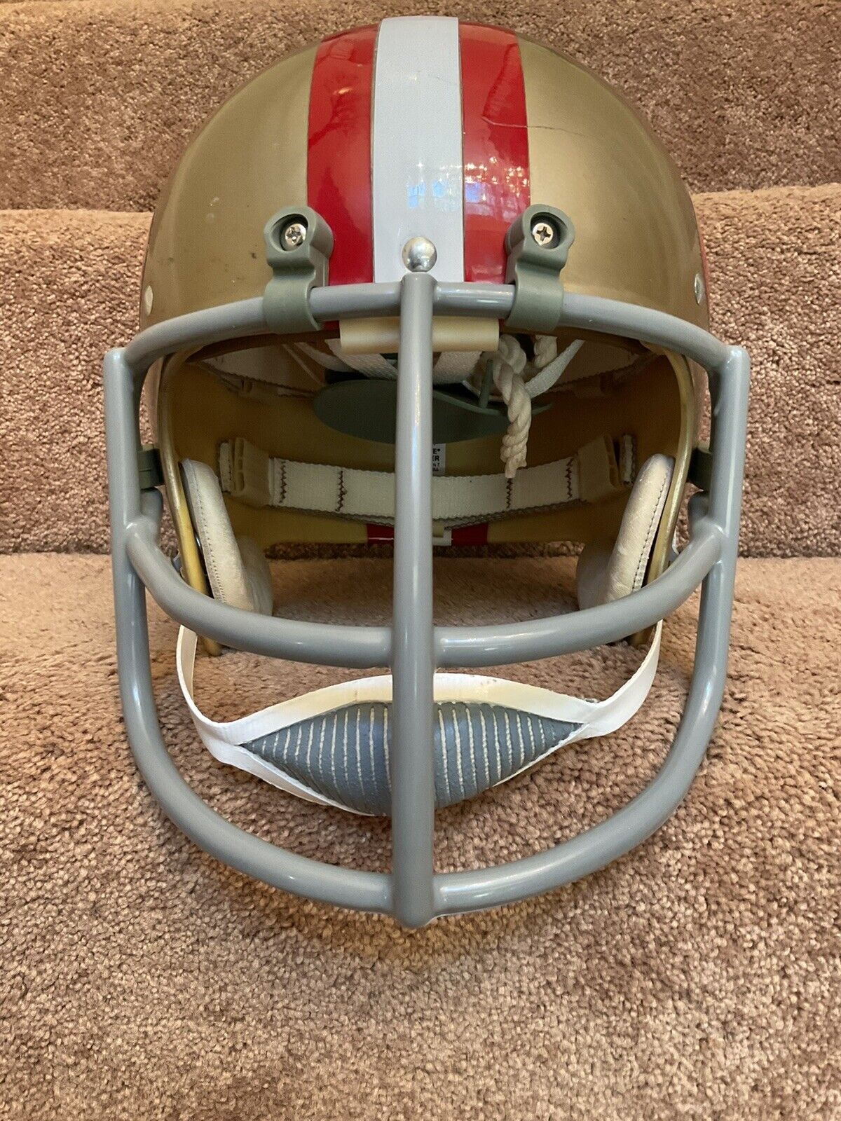 This was a Riddell lamp as described below, so helmet includes original and vintage 49ers “champagne gold” paint, striping, and decals as applied by RIDDell at the time of manufacture!