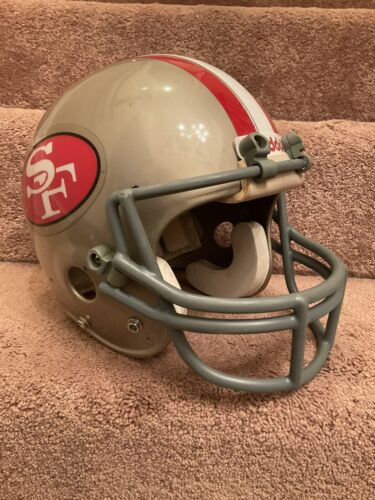 Relive the glory days of The 49ers first Super Bowl championships with a helmet from that era. Was this helmet part of one of those teams? Hard to say as we have no history on this helmet, but put it on your shelf and wonder what could have been! Will make a stunning display, and looks like it just came off the field!